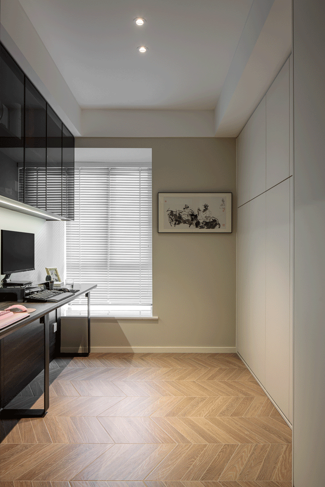 书房采用通明推拉门,日常平凡勾当空间完全不受影响,