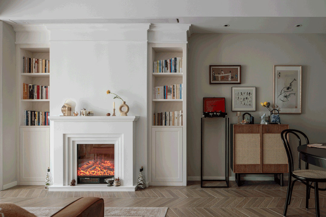 壁炉和书柜的设想替代了电视墙的设想,今天齐家安安要分享的是一套79㎡小两居室拆修案例,借用了外部220mm宽度,并且小户型既能满脚日常需求,